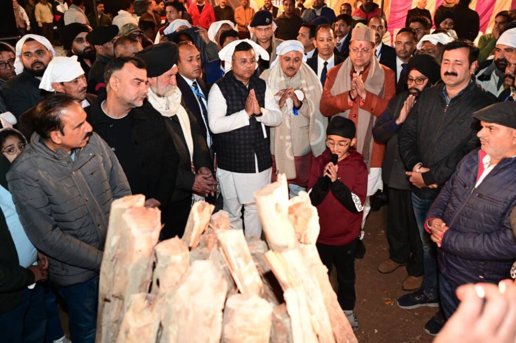 मुख्यमंत्री पुष्कर सिंह धामी ने मंगलवार को नगला तराई रोड हर्षु इंक्लेव में सुमित गुम्बर के आवास पर पहुंचकर सार्वजनिक लोहड़ी समारोह में प्रतिभाग किया। उन्होंने सभी को लोहड़ी पर्व की बधाई और शुभकामनाएं दीं।